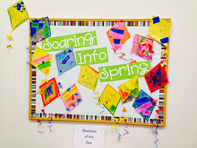 Gluing spring-related items to a bulletin board, challenge your students to a game of “I Spy” when time allows. Spy different items on the board, and challenge the class to find those items. Reveal the answer by calling on someone, or let the class fill out the location on a piece of paper to be turned in and revealed as a class.